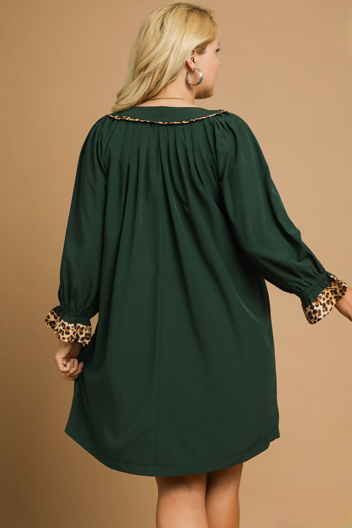 This dress the perfect blend of fierce and flattering. With playful pops of animal print and a flowy silhouette, this dress brings a wild twist to everyday chic. Effortlessly bold, this dress is a statement-maker without even trying. The contrast trim adds a fierce touch, while the roomy cut keeps you feeling cute and comfy all day long. Go wild, feel fabulous as this tunic dress is ready to roar into your wardrobe!