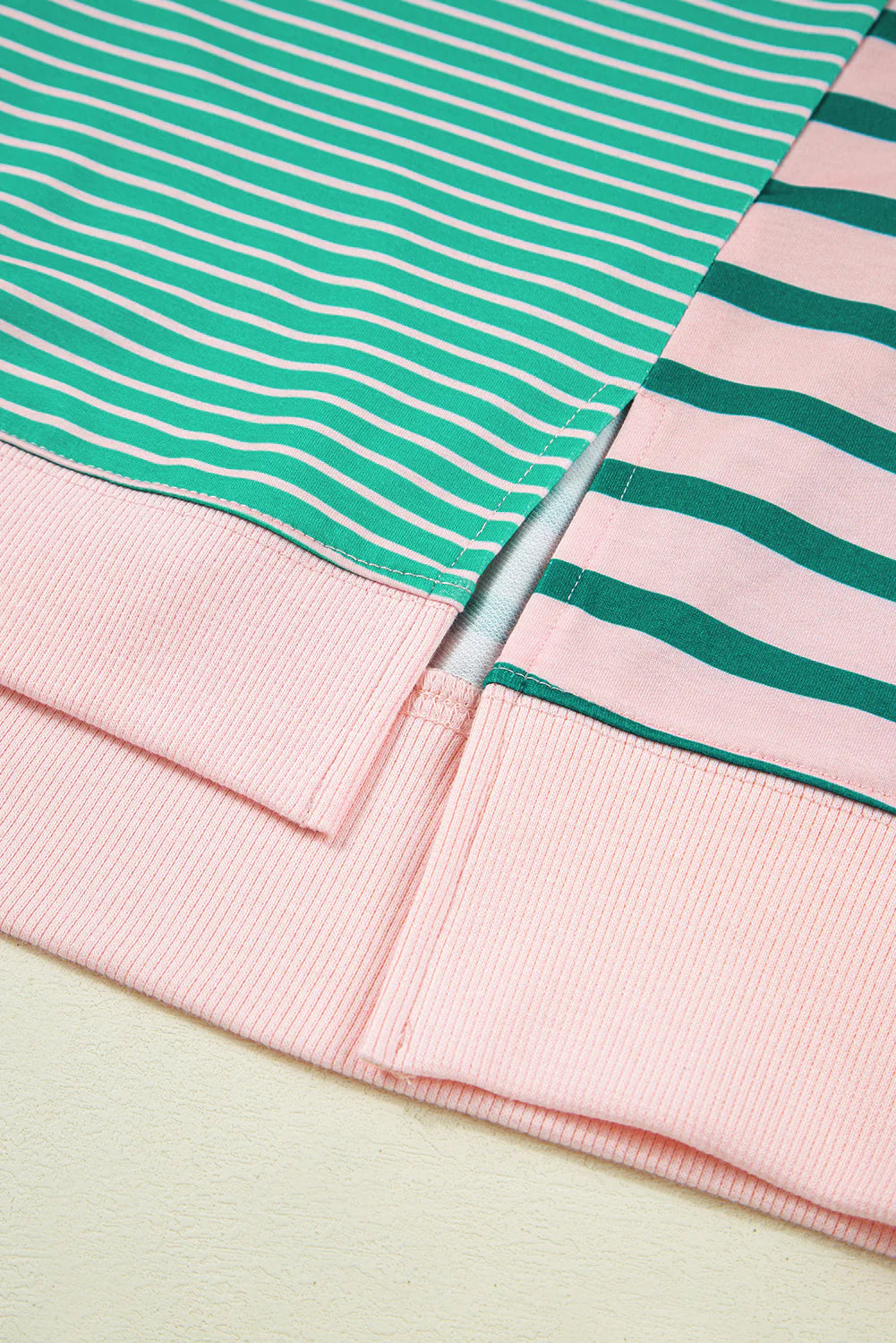 This Green Stripe Color Block Sweatshirt shows out in bold stripes, exposed seams and a comfy side slit design come together in this standout sweatshirt. The color block pattern adds a trendy twist, while the soft, stretchy fabric keeps you cozy all day long. Perfect for lounging or leveling up your casual look.