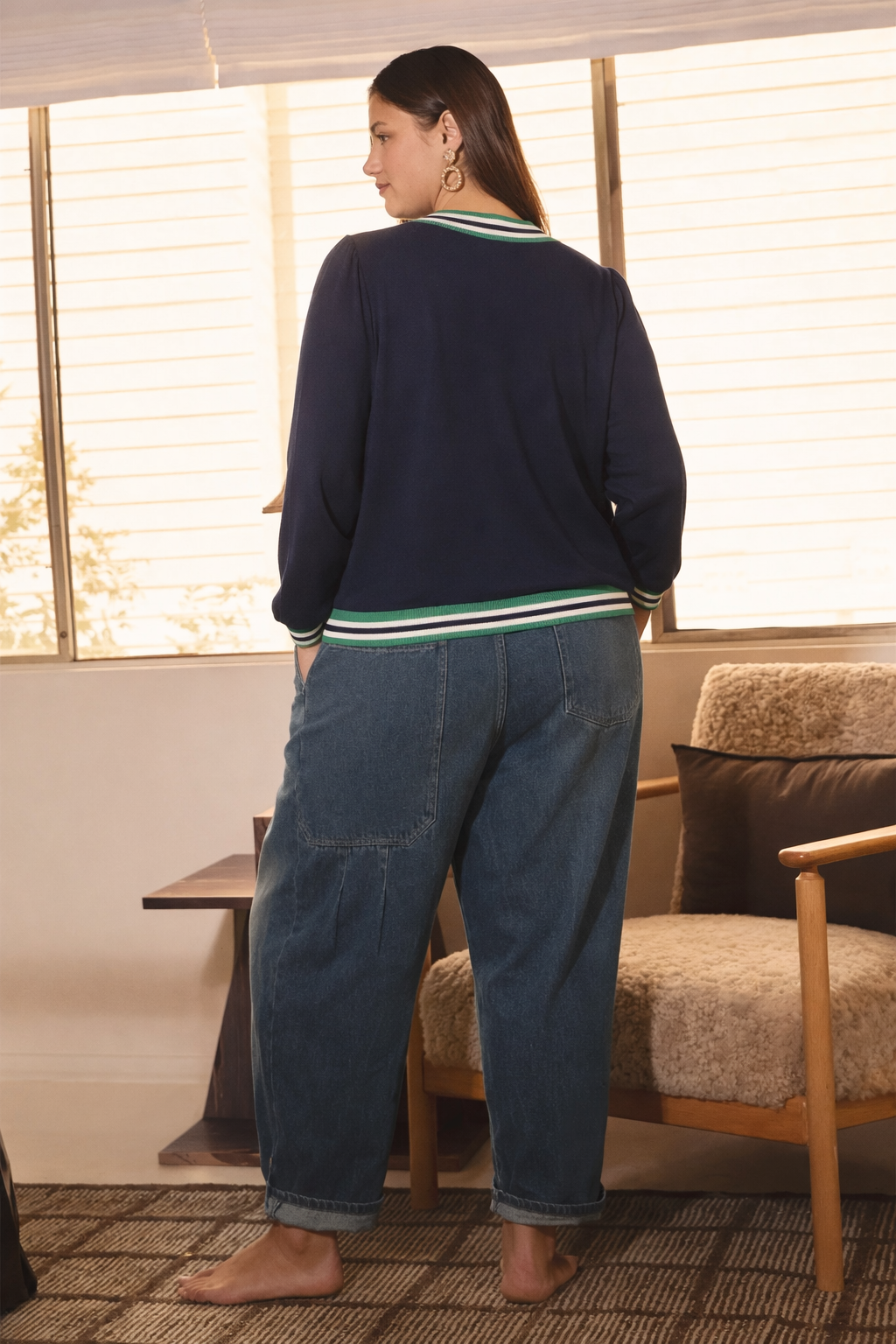 Best Seller for a reason :) Mock neck knit top with striped rib trim at the collar, cuffs, and hem, finished with slight puff sleeves. XL=1XL